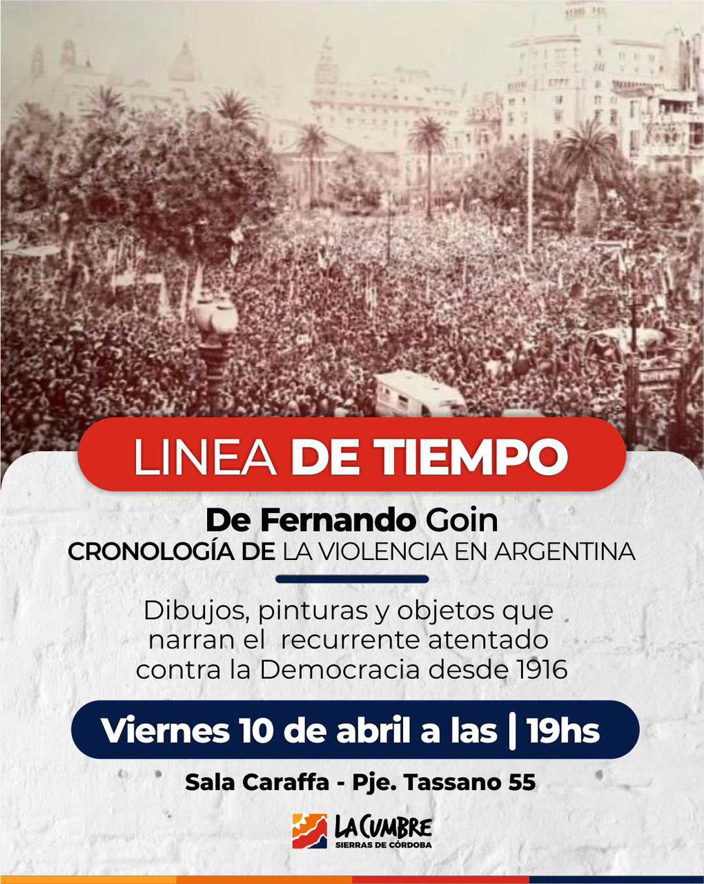 «Línea de Tiempo es un dispositivo de lectura cronológica de la historia argentina, desde el 4 de abril de 1916 (fecha de la instauración del sufragio universal) hasta la actualidad, contemplando presidentes, golpes de estado y gobiernos de facto. El hallazgo de poder aplicar el dispositivo de lectura visual por color, sobre las democracias y dictaduras de la Argentina, radica en el gran potencial poético/didáctico que ofrece una mirada analítica alternativa sobre gran parte de la historia local del siglo XX, referida principalmente a la intolerancia por sostener los procesos democráticos»